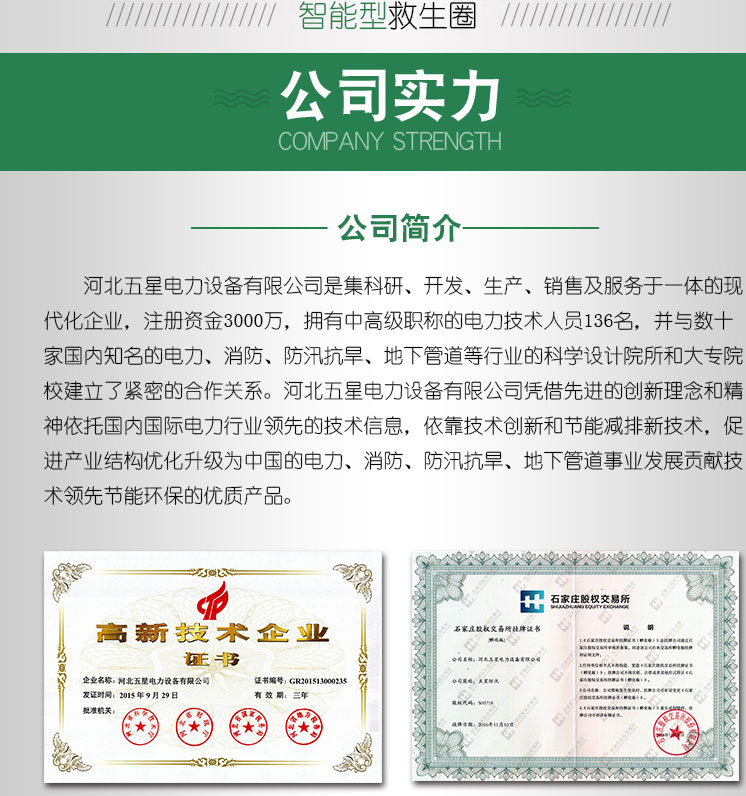 河北五星電力設備有限公司致力于搶險救災、防汛抗旱、應急救援技術裝備的研發生產,所研制生產的防汛抗洪、防災減災、應急搶險救援新產品新裝備, 廣泛應用于我國的防汛抗洪搶險、應急救災救援、滑坡泥石流、臺風以及地震救援、城市內澇、抗旱節水灌溉中。