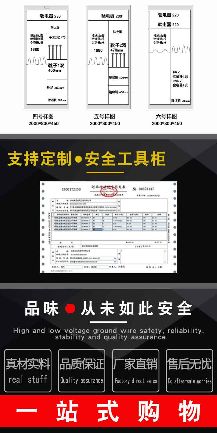 電力安全工具柜又稱安全工器具柜,按功能可以分為普通排風除濕柜,智能烘干除濕柜,智能抽濕除濕柜等 外殼選用1.2優質冷板,采用磷化鋅系、藝術型靜電噴涂,高強度鋼化透明玻璃(外觀色為微機灰)。接地線均配有接地線繞線架及帶夾反光編號牌,使接地線纏繞規范不易損壞,擺放整齊使用方便;絕緣手套配有防粘連撐板,絕緣擋板、絕緣棒、驗電筆、操作桿均設有橡膠墊定位卡,安全帶、腳扣、鑰匙設有專用掛鉤,標示牌按種類分格放置,圍網配有專用包,網桿配有專用筒,網桿座分格放置,防毒面具配有專用箱,呼吸器設有專用滑板。廣泛應用于各種電壓等級的變電站、集控站、線路工區以及電力公司客服中心等單位和部門,并適應不同溫濕度地區的使用。
