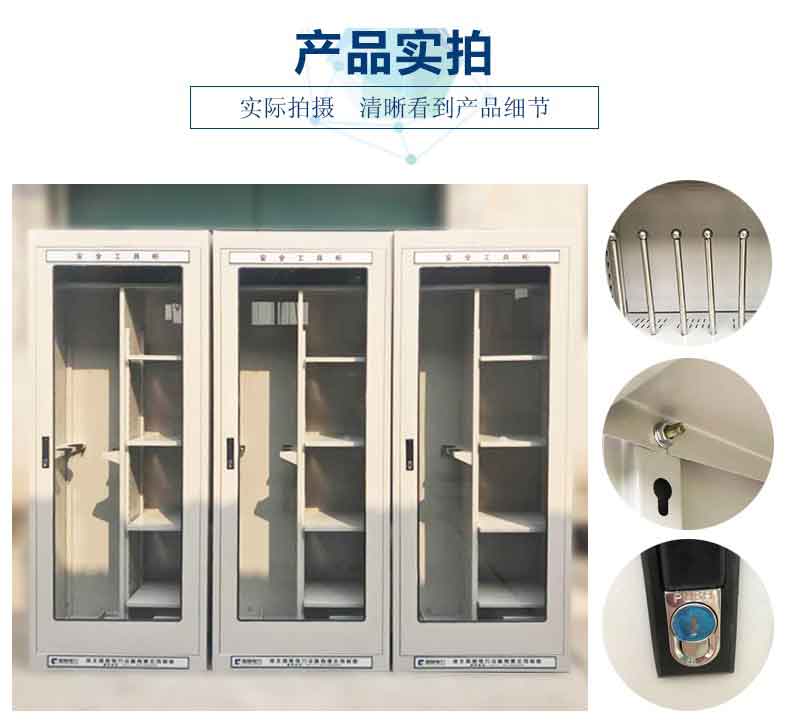安全工具柜是集防潮、除濕、防塵、防損、整齊美觀于一體的普通智能安全工具柜系列產品。其外殼使用優質冷板,采用藝術型靜電噴涂,柜門選用高強度鋼化玻璃,外觀大方、美觀。